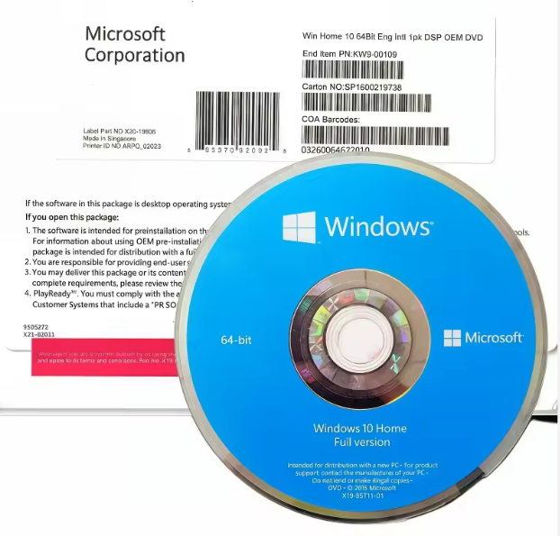 Windows 10 Home DVD Versión Completa con Etiqueta COA, Activación en Línea, Garantía de 12 Meses, Clave de Windows 10 Home, Licencia OEM en Stock