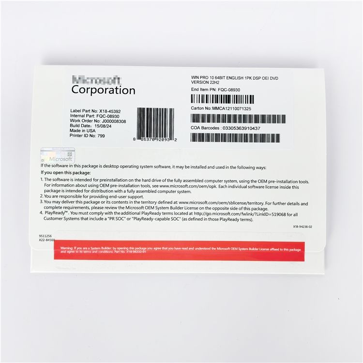 Windows 10 Pro DVD Versión en Inglés Clave OEM Activación Global en Línea 100% Personalización Disponible 6 Meses de Garantía de Calidad