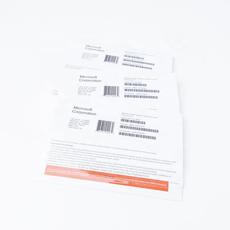 Windows 10 Pro DVD Paquete Activación en línea global (1 paquete = 5 piezas) Garantía de por vida