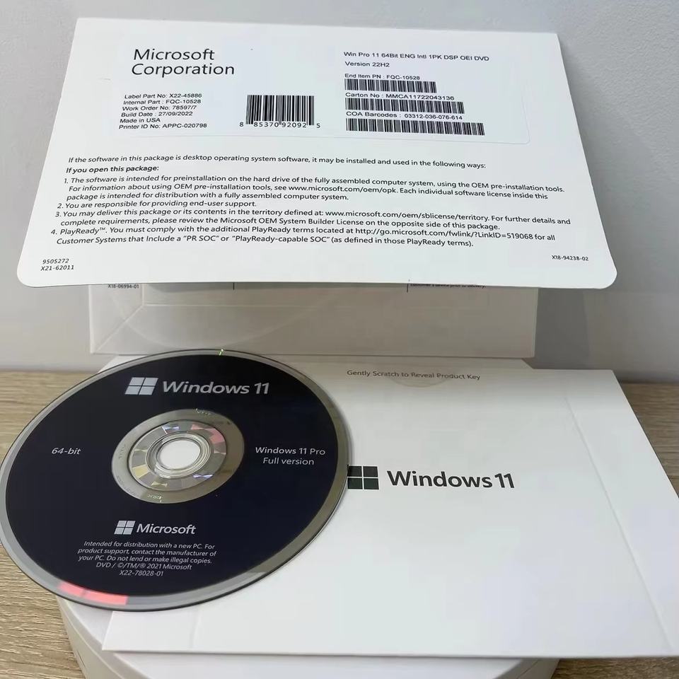 Windows 11 Pro Dvd Pack Activación global en línea (1 paquete = 5 piezas) Garantía de por vida