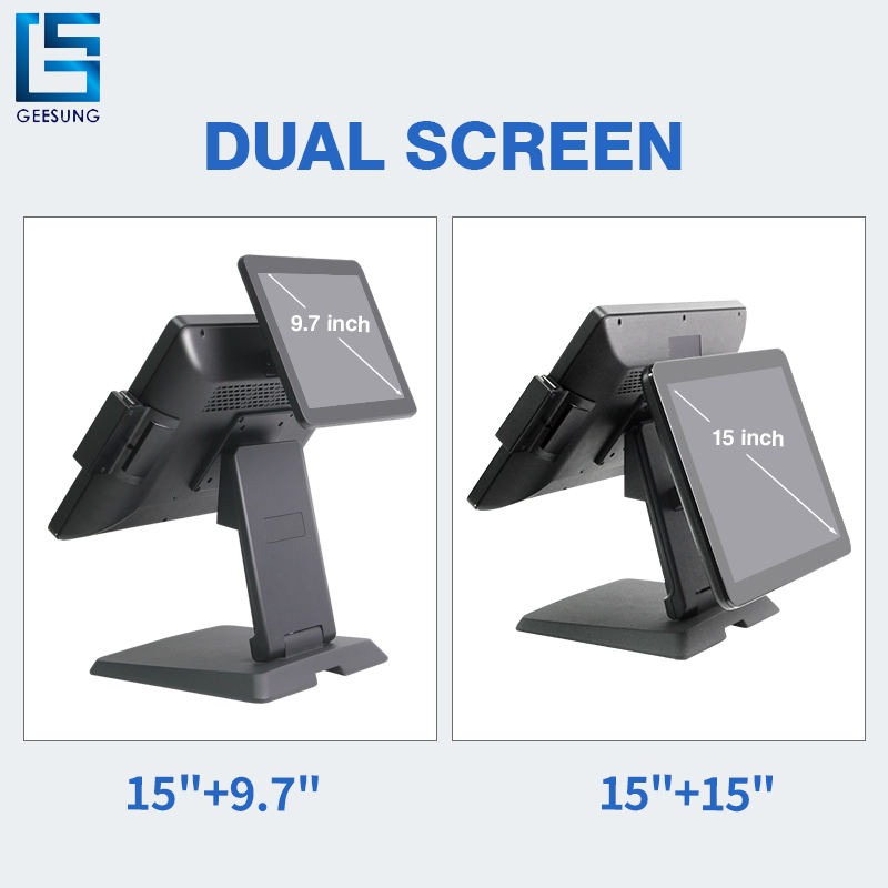 Windows Pantalla dual Escritorio y terminal POS portátil Caja registradora todo en uno sistemas POS para sistemas POS de auto pedido