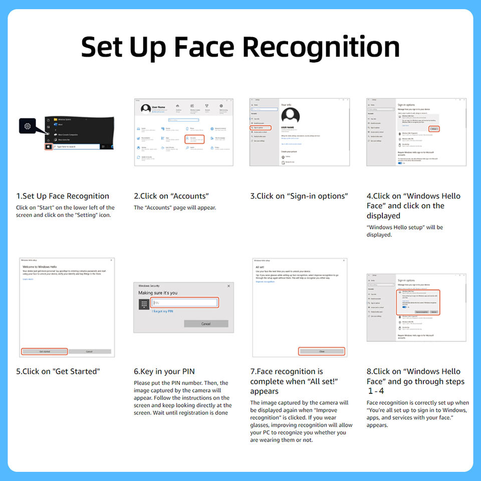 1080P USB cámara web con Windows hola