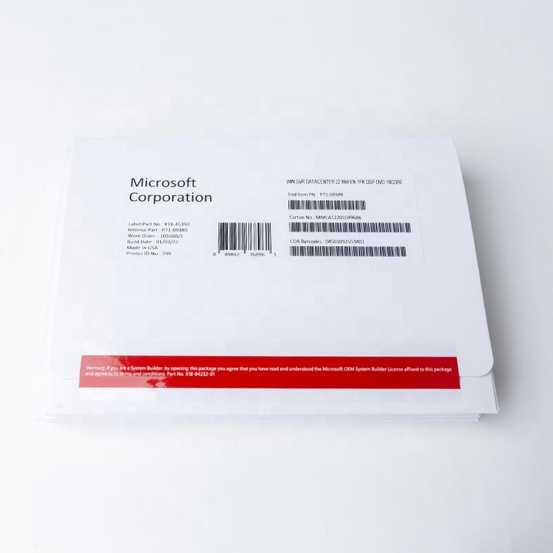 Windows Server 2022 Data Center DVD Pack Activación en línea de garantía de por vida