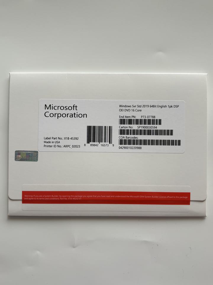 Nombre del producto:DVD OEM estándar de Win Server 2019
