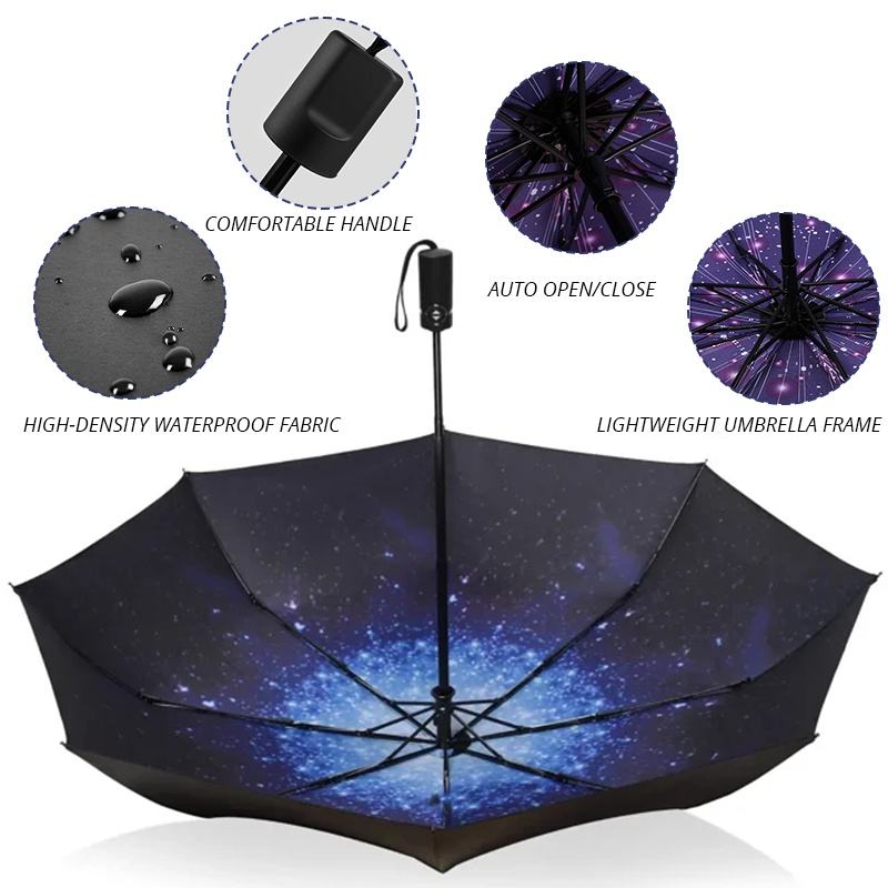 Paraguas de Viaje Automático Resistente al Viento, Apertura y Cierre Automáticos, Protección UV, Paraguas para Sol y Lluvia con Logotipo Personalizado
