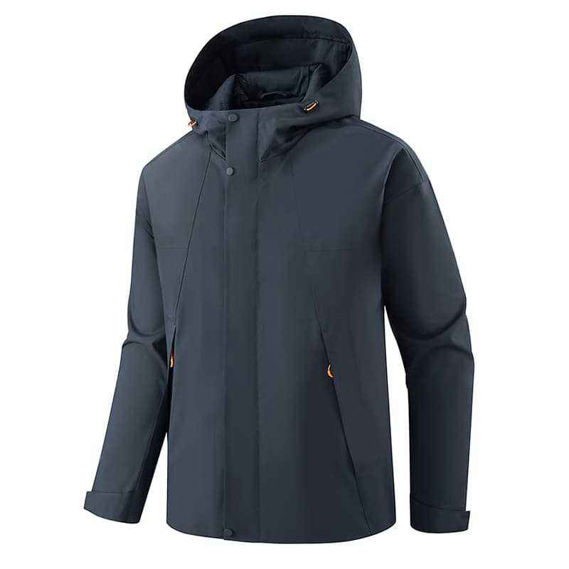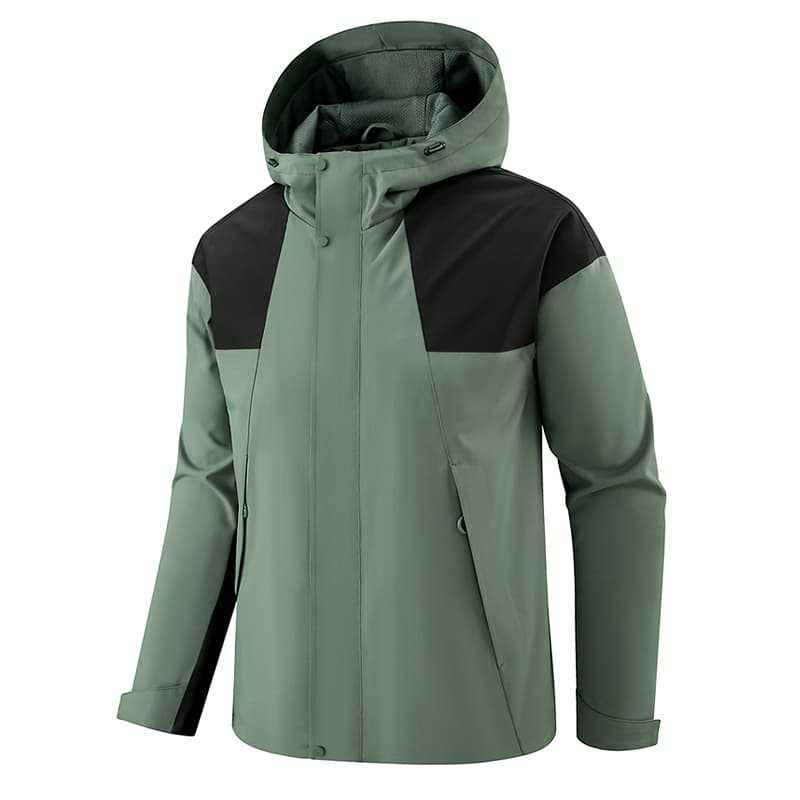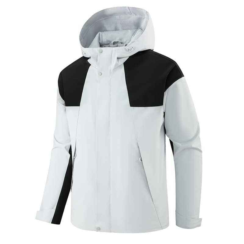 Chaqueta de trabajo para exteriores de una sola capa con capucha a prueba de viento para hombre, con forro interior, para uso en invierno, diseño de contraste de color sólido