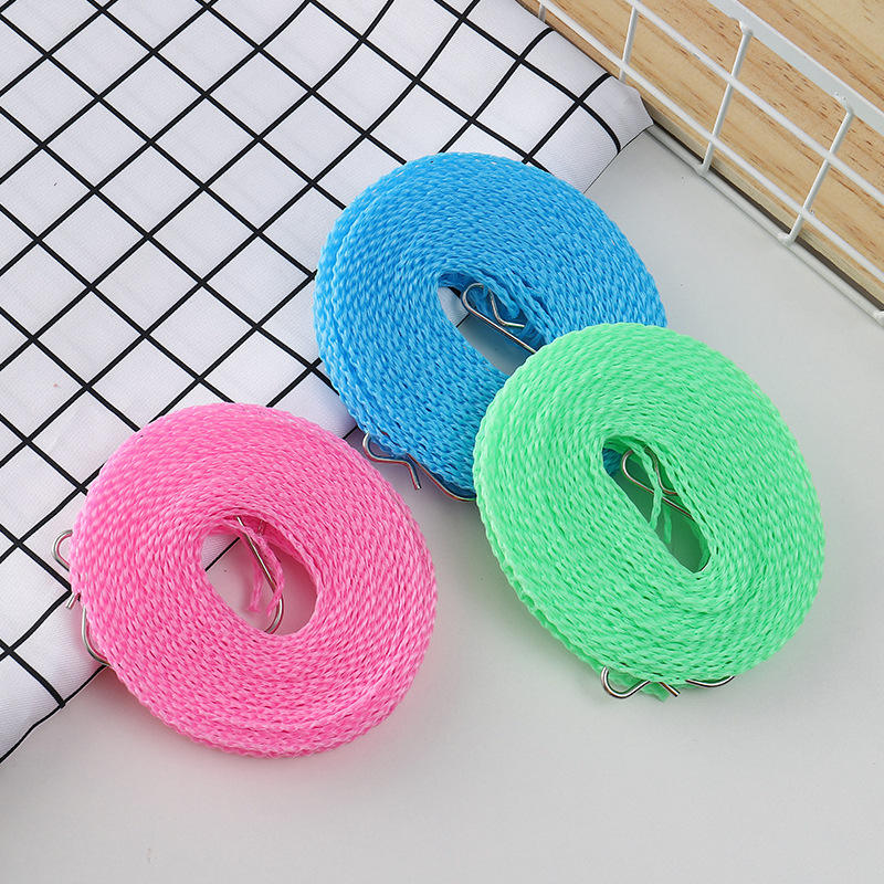 Cuerda Redonda para Tender Ropa, Resistente al Viento, Tipo Gancho, para Uso en Interiores y Exteriores, en Colores Azul, Verde y Rosa