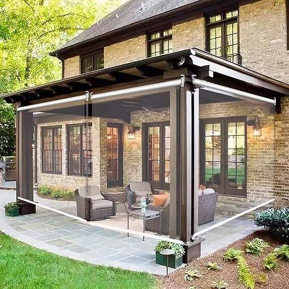 Persianas enrollables transparentes de PVC a prueba de viento para exteriores, para pérgola, garaje, terraza