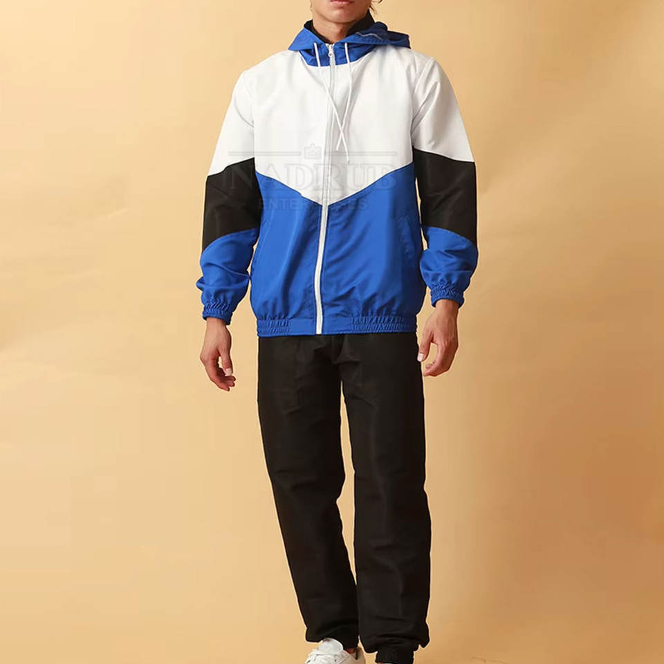 Conjunto de sudadera cortavientos a prueba de viento con cintura elástica y puños con cremallera frontal conjunto de Sudadera con capucha cortavientos con diseño deportivo