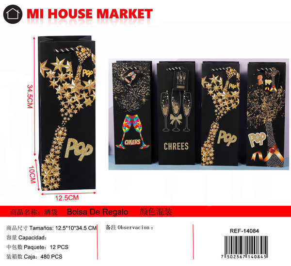 Bolsa de Papel para Vino con Impresión Digital a Color, Bolsa de Regalo para Empaque de Vino