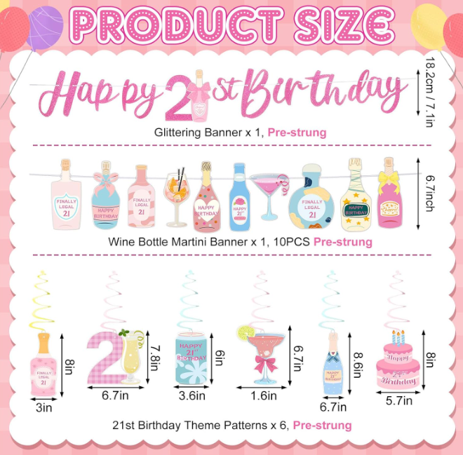 Palabras clave:Suministros para fiesta de cumpleaños número 21 de Martini