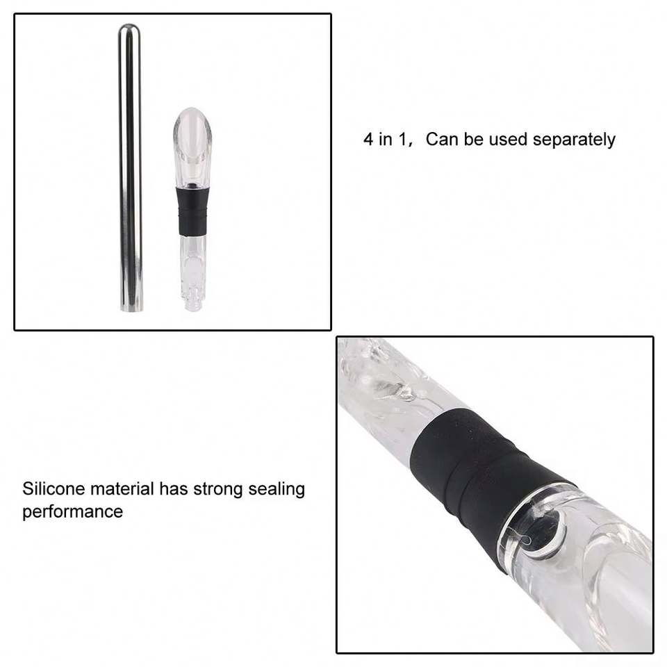 Enfriador de vino, Enfriador de vino helado, Enfriador de cerveza, palo con vertedor de Vino + tapón + cortador, palo congelado de acero inoxidable