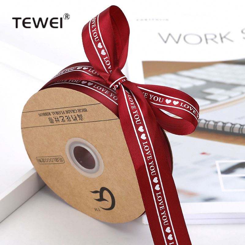 Cinta de satén roja para vino, lazos para regalo, accesorios para el cabello, cinta de seda impresa, embalaje de cinta, cinta decorativa colorida al por mayor