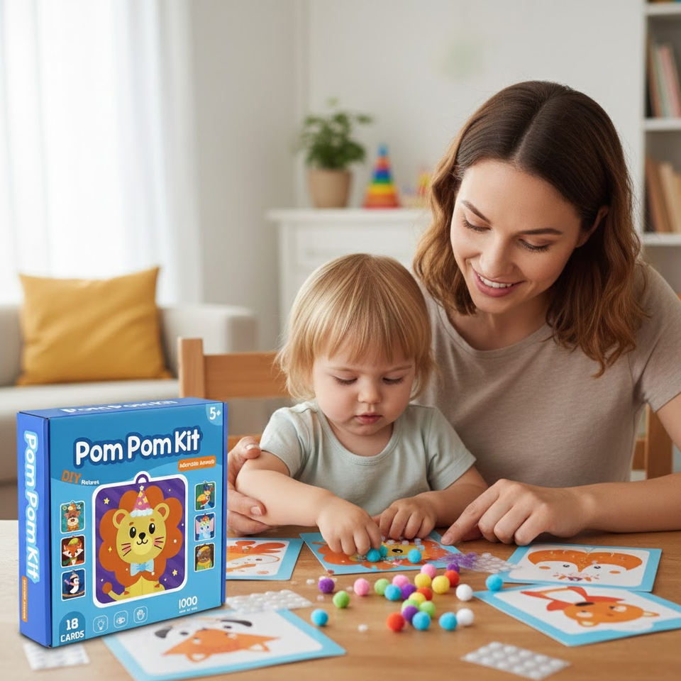 Kit de Juguetes de Dibujo con Pegatinas de Pompones de Peluche para Niños, Personalizado por WingArt Factory, Suministros de Arte y Manualidades, Juego Educativo