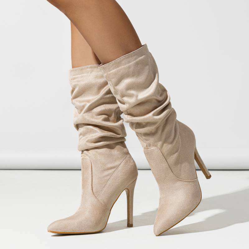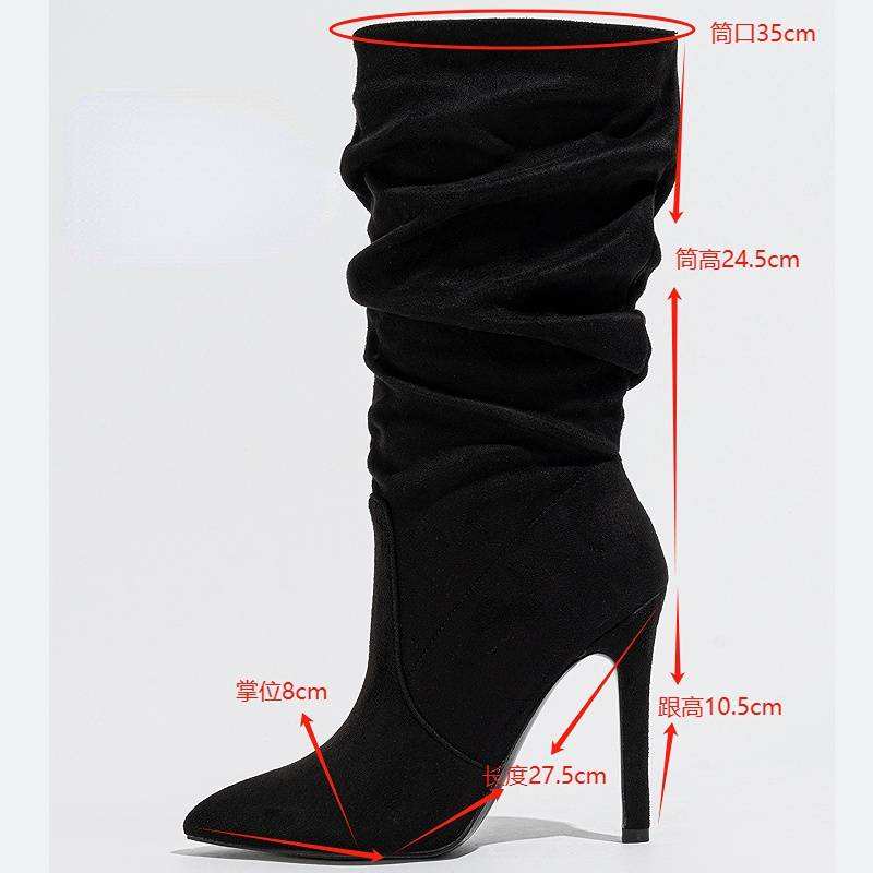 Botas de Mujer Winkle de Gamuza, Color de Moda, Tacón Delgado, Estilo Midi 2024, Botas Occidentales de Cuero a la Moda