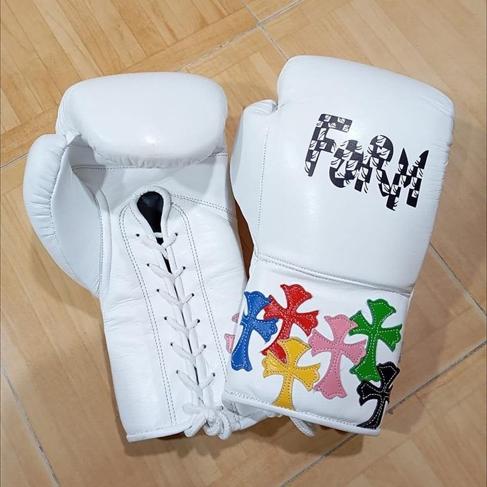 Juego de boxeo ganador Juego de boxeo blanco personalizado con diseño de rompecabezas colorido Guantes Protector de ingle para la cabeza para entrenamiento y combate