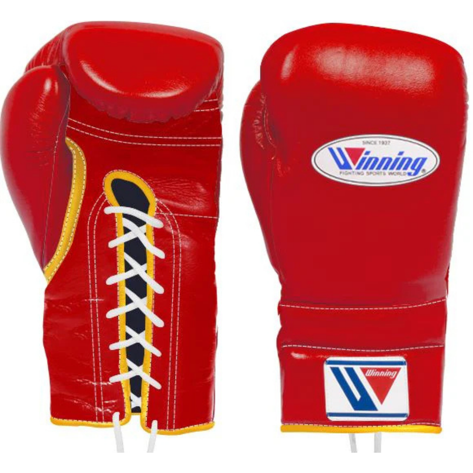 Guantes de Boxeo con Cordones Winning, Rojo Dorado, Cuero Genuino, Guantes Profesionales de Boxeo para Entrenamiento y Combate, Calidad Elite Pro, 8oz