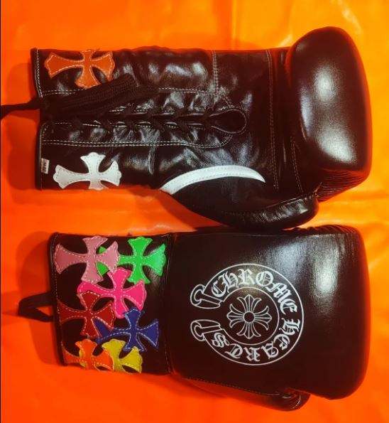 Guantes de Boxeo de Cuero Chrome Heart Personalizados de Alta Calidad, Transpirables, con Cierre de Cordones, Impresión Serigráfica para Entrenamiento y Sparring