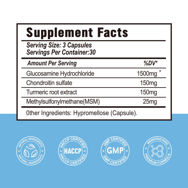 Glucosamina Clorhidrato Sulfato de Condroitina Extracto de raíz de cúrcuma Metilsulfonometano (MSM)Ingrediente principal