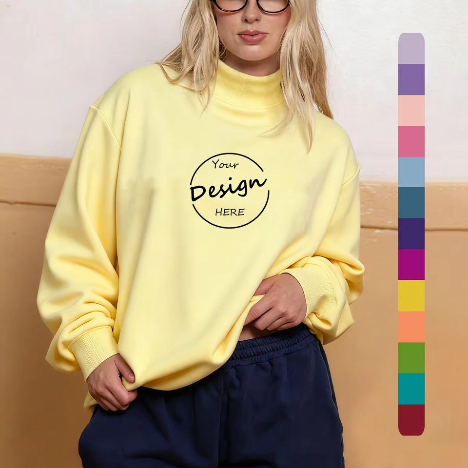Sudadera de Cuello Alto Reversible de Forro Polar Suave para Mujer, Estampado Personalizado de Invierno y Otoño, Larga, Holgada, de Color Sólido