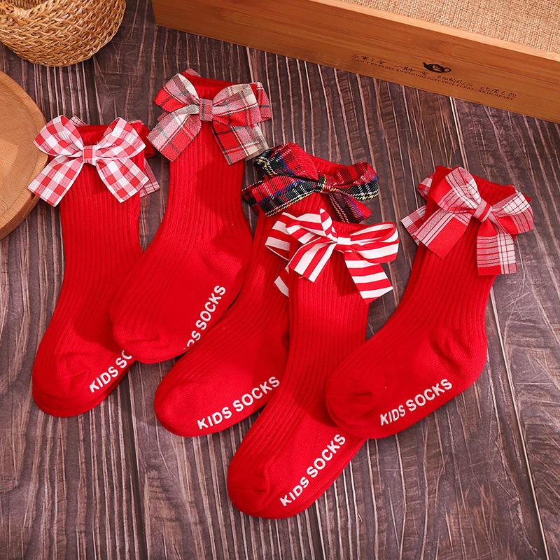 Invierno otoño español Navidad niño niños botines calcetines Medias gran lazo suave algodón Navidad bebé niñas hasta la rodilla calcetín