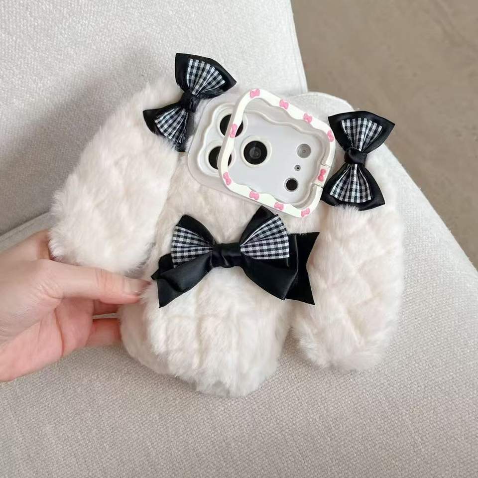 Funda de Teléfono de Felpa con Diseño de Conejo de Invierno para iPhone 13 14 15 16 17 Pro Max, Funda de Teléfono de PC Suave, Cálida y Linda con Diseño de Animal