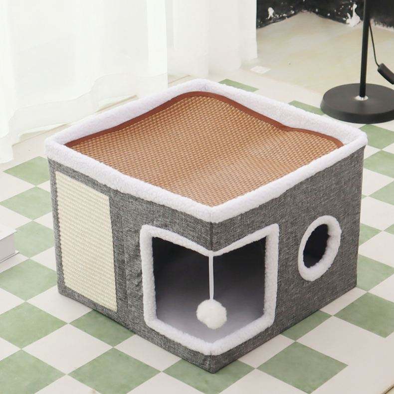 Casa Cueva para Gatos de Invierno, Camas y Muebles Cubiertos para Gatos con Rascador y Tienda de Escondite