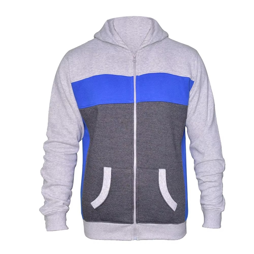 Conjunto Deportivo de Dos Piezas para Hombre, Colección de Invierno, Color Azul y Gris, Bloques de Color, Algodón, Felpa Técnica Personalizada, Ropa Urbana, Venta al por Mayor
