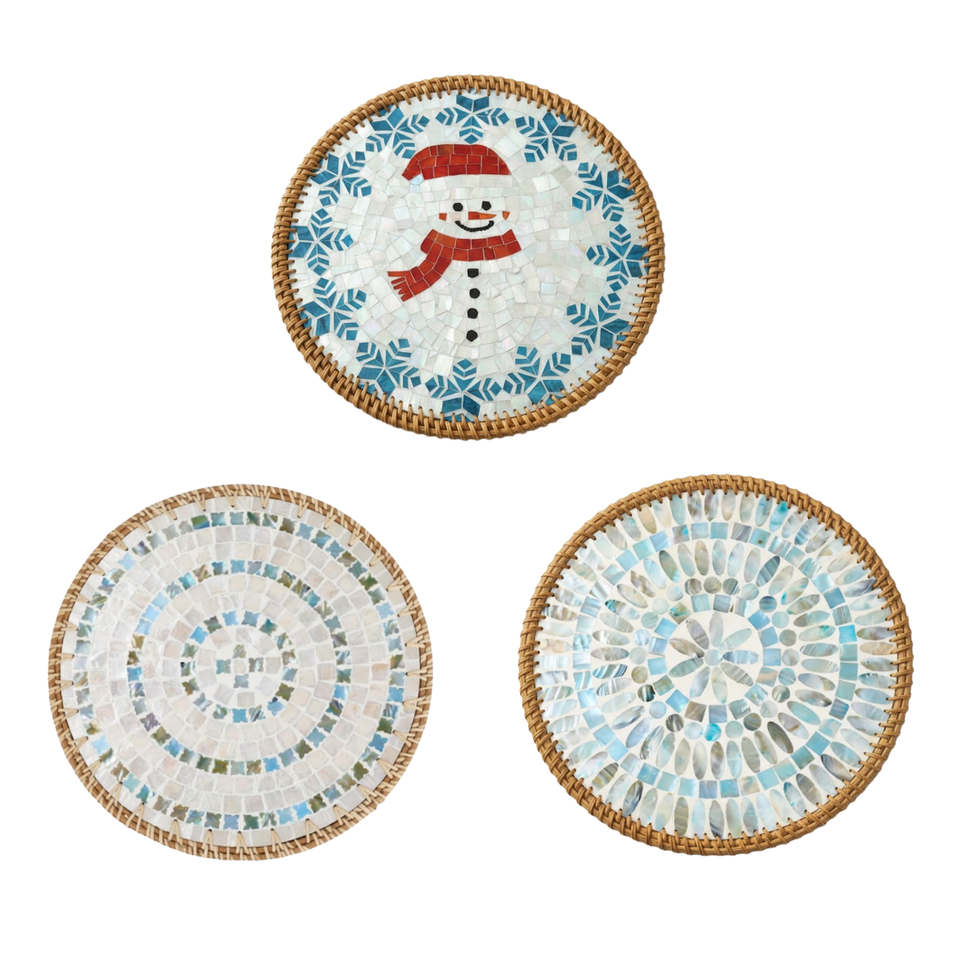 Nombre del Producto:Mantel individual de nácar con diseño invernal y borde de ratán