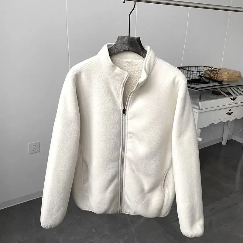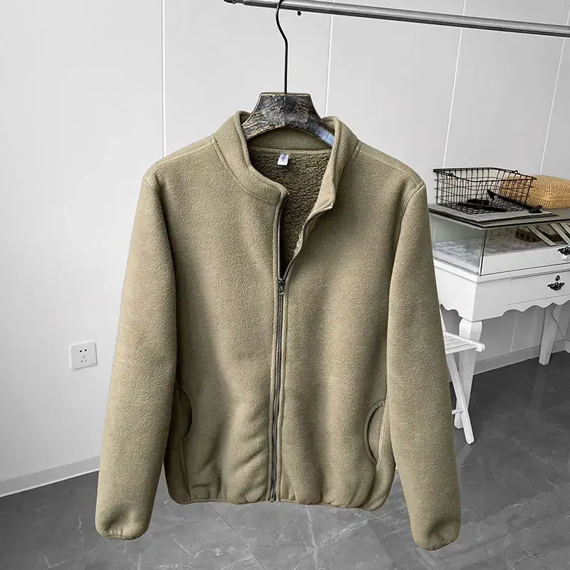 Abrigo Casual de Sherpa para Invierno, Color Sólido, Grueso, Cálido, con Cuello Alto, Cremallera, Cortavientos, Suave y Cómodo de Forro Polar