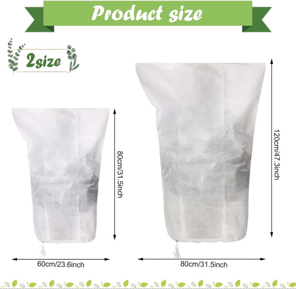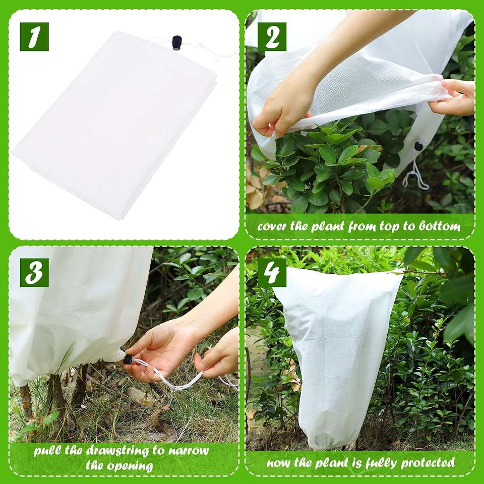 Manta de tela para proteger la congelación de plantas, bolsas de cubierta con cordón, no tejida, ideal para el invierno, árboles frutales y plantas en maceta