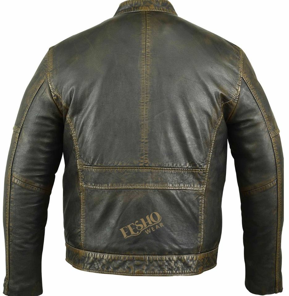 Waxed Men Leather Jacket:Genuine Leather