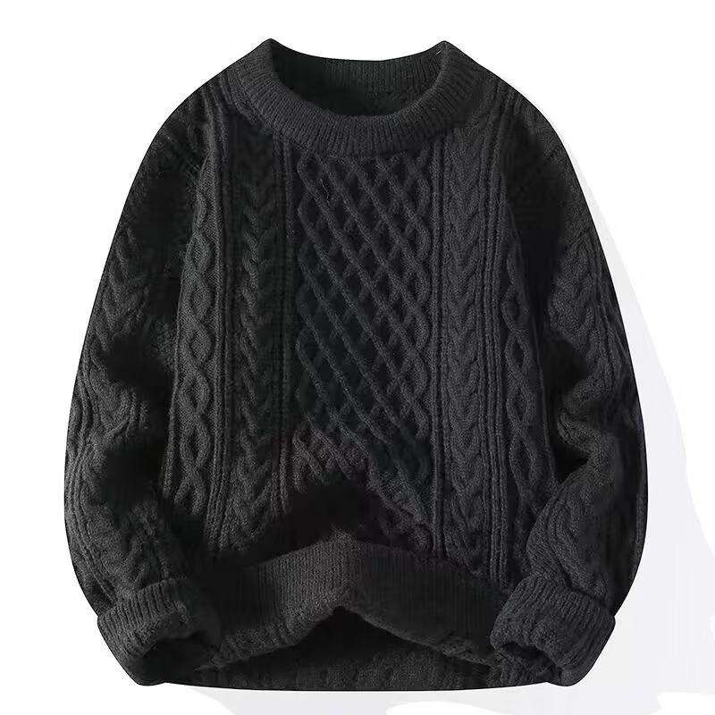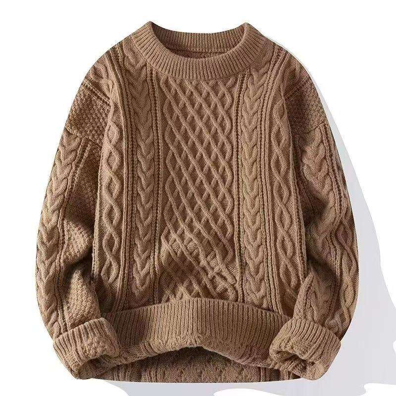 Gran oferta de invierno, trenzas puras hechas a mano, modelo suelto, suéter de Cachemira con cuello redondo de Color puro para hombre
