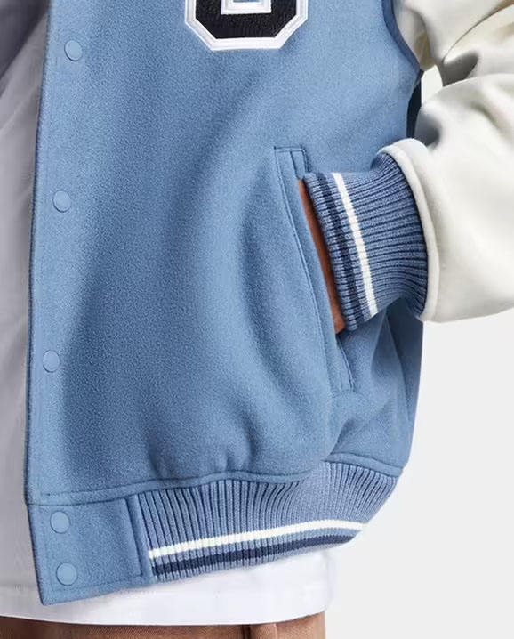 Chaquetas Varsity Unisex Formales con Camuflaje y Revestimiento de Primavera, Apliques de Chenilla Bordados, Forro de Sherpa y Logotipo Frontal
