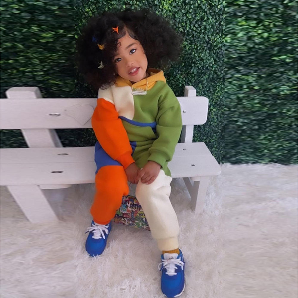 Conjunto de Dos Piezas de Chándal con Capucha de Poliéster/Algodón para Niños, Ropa Casual para Niños y Niñas