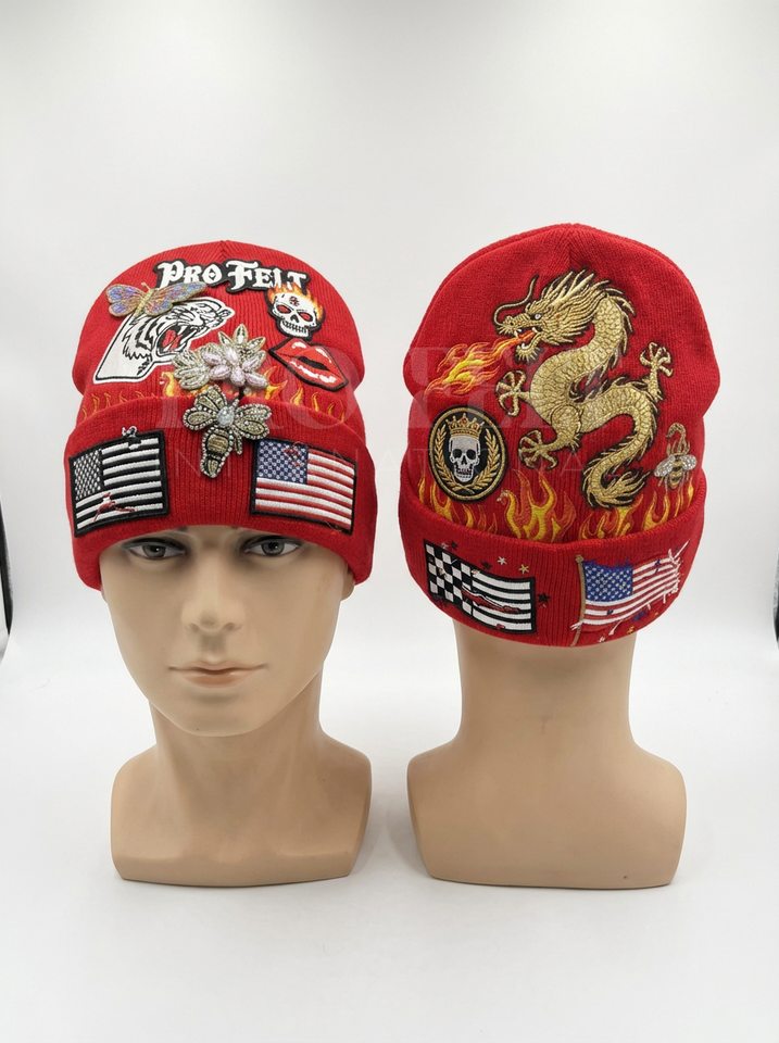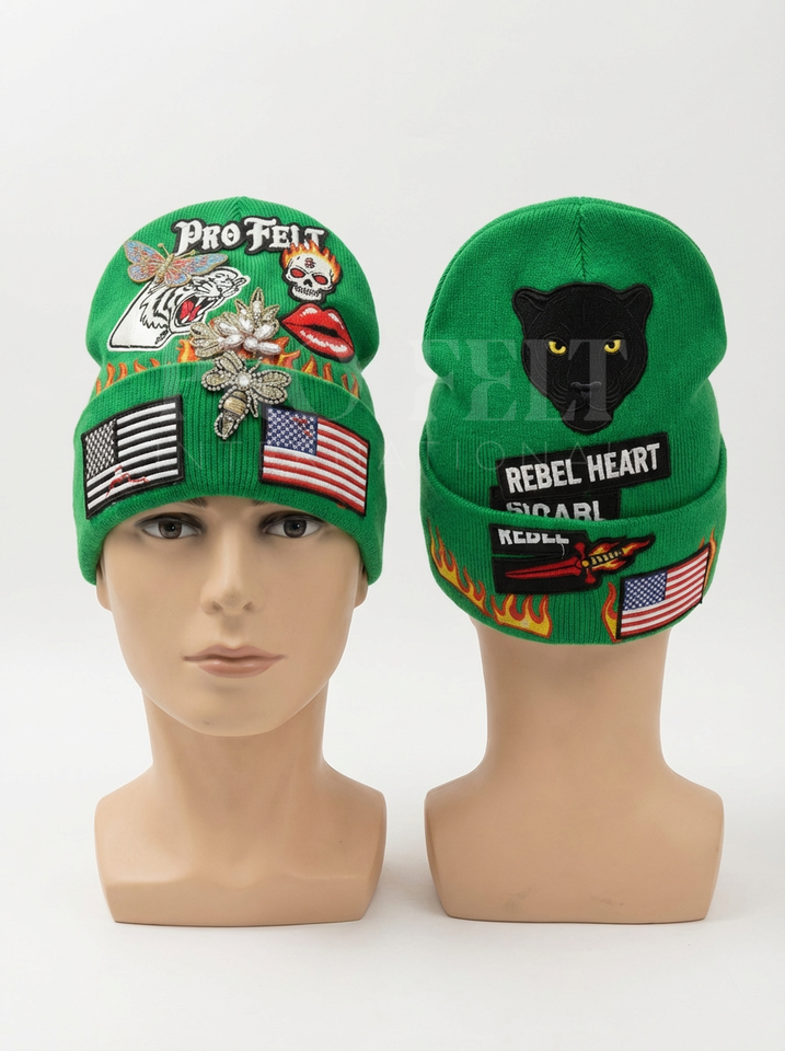 Gorro de Invierno de Punto con Bordado Decorativo, Tejido Elástico Suave y Cálido, Gorro de Jacquard Informal Unisex Personalizado