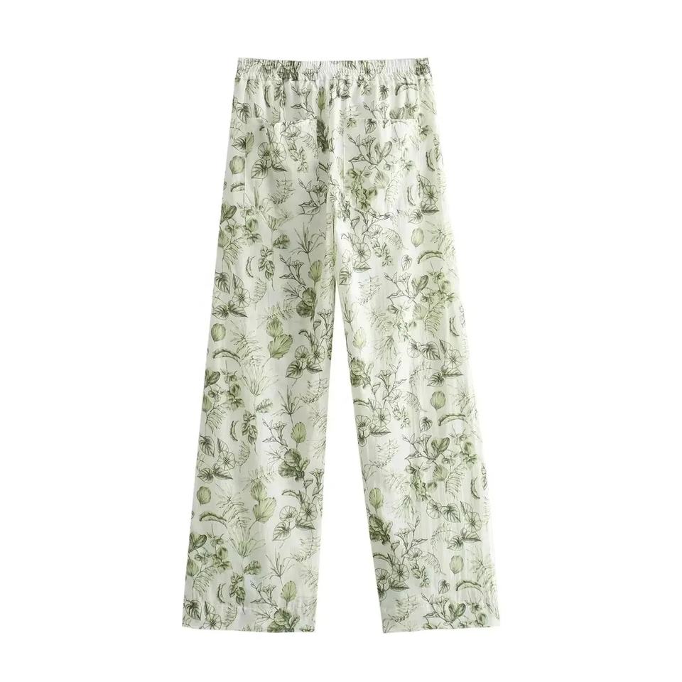 Pantalones de Mujer de Terciopelo con Cintura Alta, Estilo Casual, Color Verde, Lavado a la Piedra, Corte de Campana