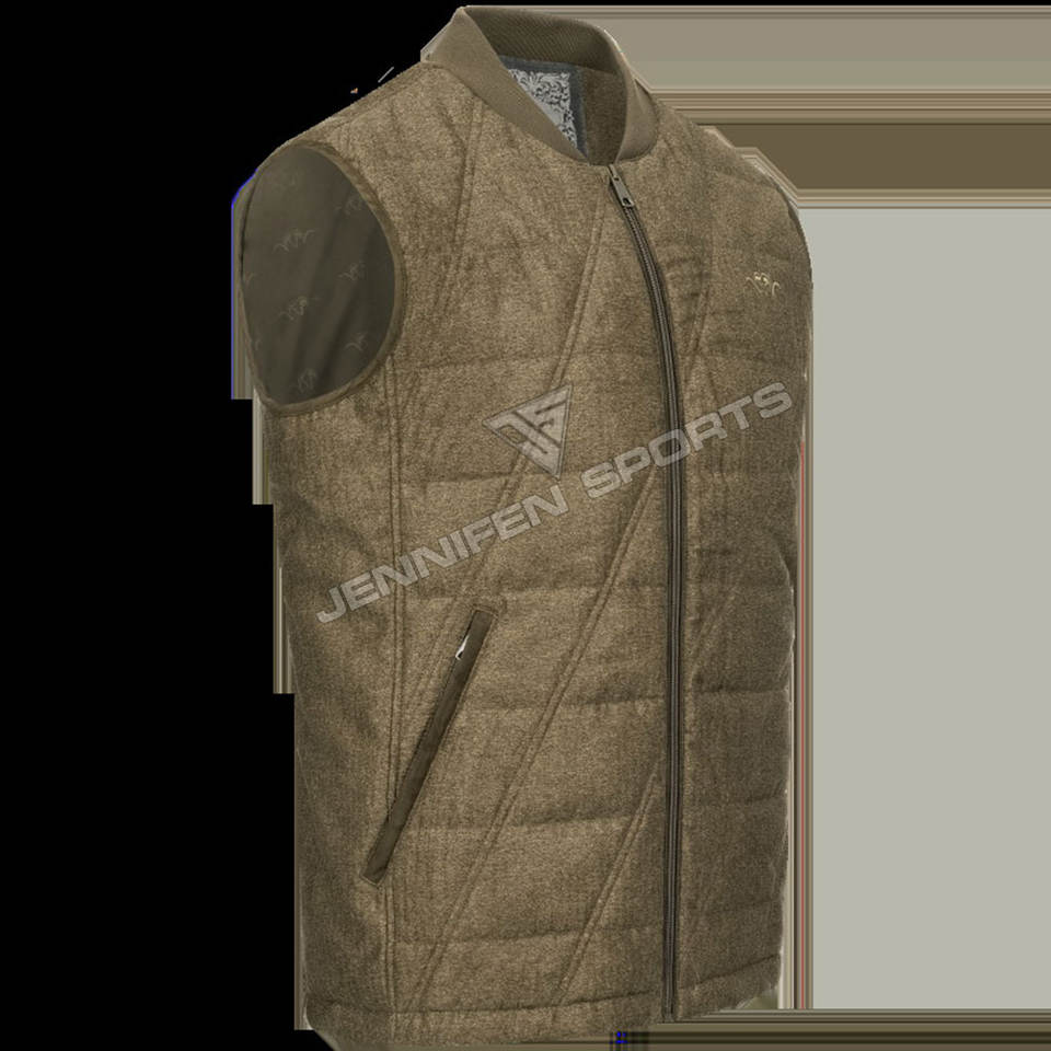 Chaleco de caza de invierno para hombre, Material de concha 100%, tela de lana, cierre de cremallera, bolsillos laterales, cuello acanalado, forro interior de poliéster
