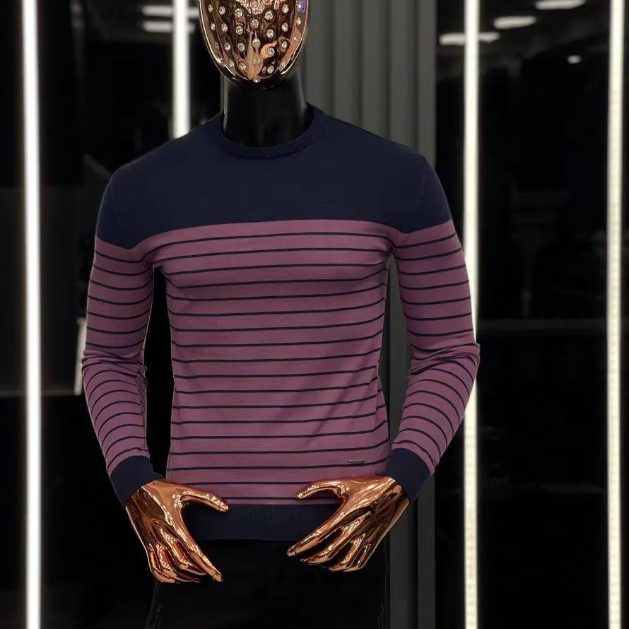 Suéter Casual de Invierno para Hombre, Cuello Redondo, Manga Larga, Cálido, Antiarrugas, 100% Algodón, Diseño Jacquard