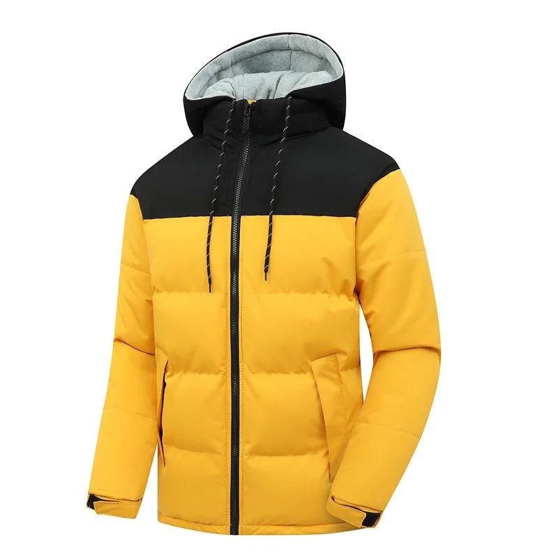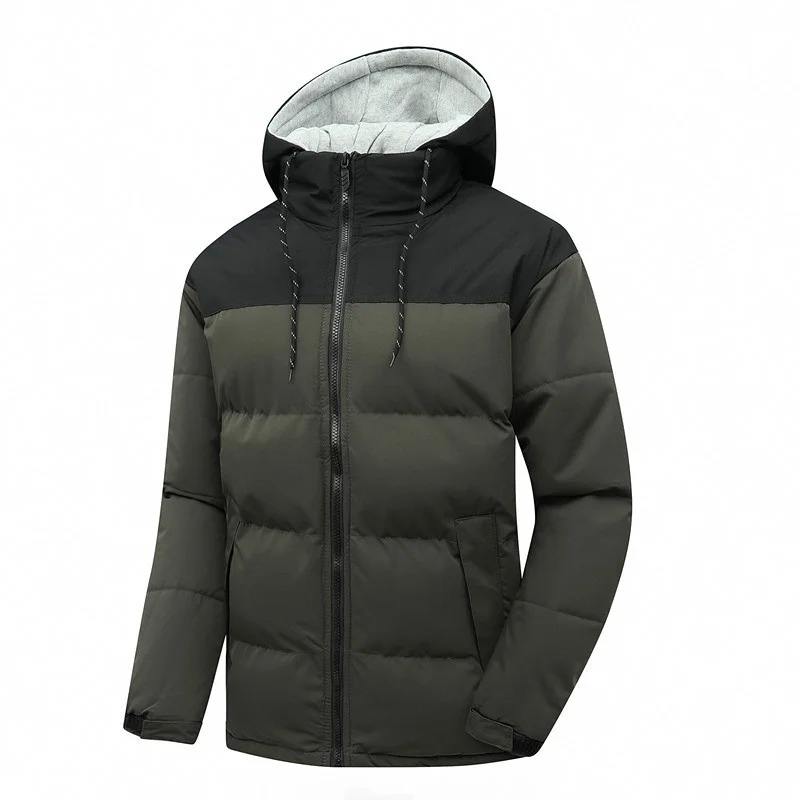 Parka de invierno de alta calidad para hombre, chaqueta acolchada de algodón, capucha a prueba de viento, soporte, tela de lona informal, logotipo personalizado, colores de retazos