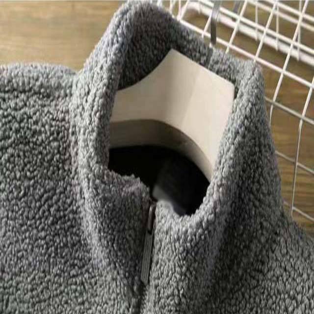 Chaqueta de Invierno para Hombre, Color Sólido, Forro Polar Sherpa, Cierre de Cremallera, Cuello Alto, con Logotipo Bordado Personalizado en la Parte Delantera, Informal, Transpirable, para Adultos