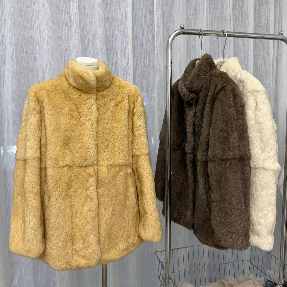 Nuevo abrigo de piel de conejo de nutria de piel completa de Invierno para mujer, abrigo de piel adelgazante de lujo ligero de medio a largo, piel Real gruesa y cálida