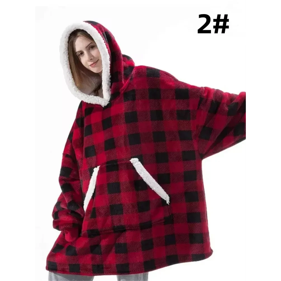 Jersey de invierno de gran tamaño, sudadera de lana, mangas largas de franela, Sudadera con capucha roja de talla única para mujeres y hombres, manta portátil de TV gigante