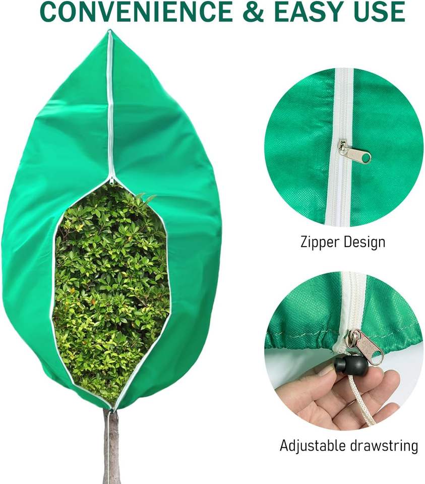 Protección Invernal para Plantas de Exterior, Protección Invernal para Plantas en Maceta, Cubierta Protectora para Plantas con Cremallera y Cordón