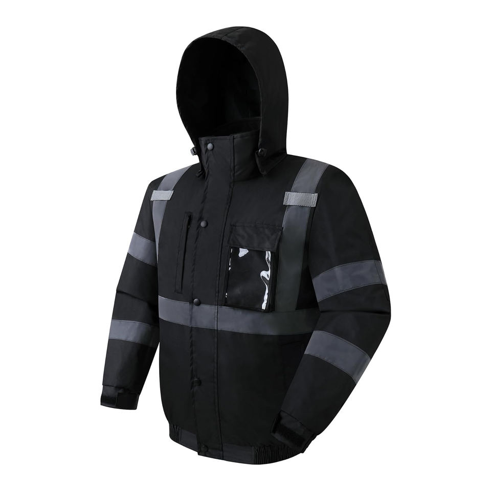 Chaqueta de seguridad de invierno: alta visibilidad, impermeable y cálida para hombres y mujeres Cinta reflectante de color negro