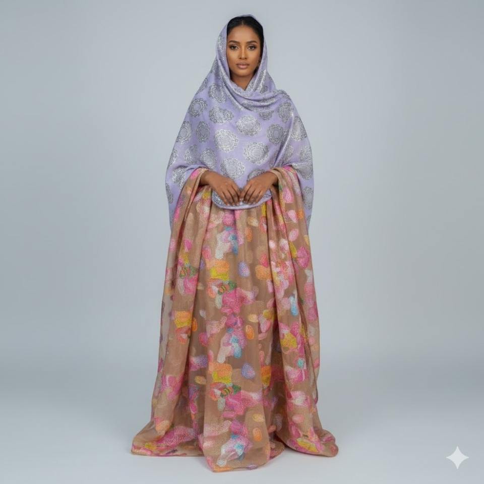 Vestido Tradicional Somalí Fransawi Dirac de Alta Calidad con Diseño Jacquard Liso y Estampado Floral Abstracto para Fiestas Nocturnas, Oferta de Invierno