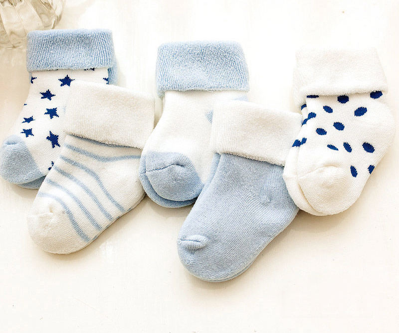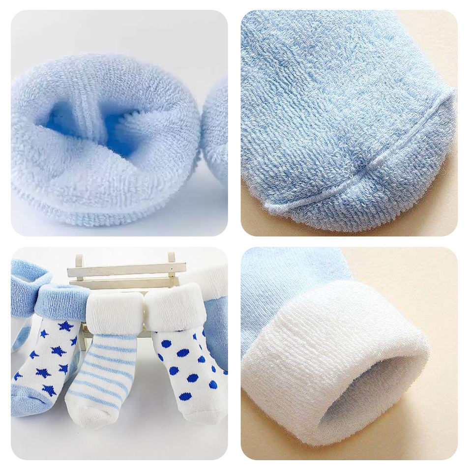 Invierno estrella dot rayas gruesa terry recién nacido calcetines del bebé lindo