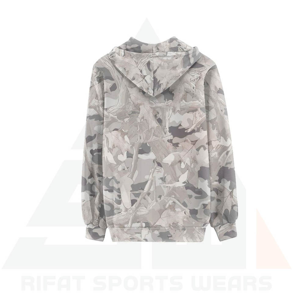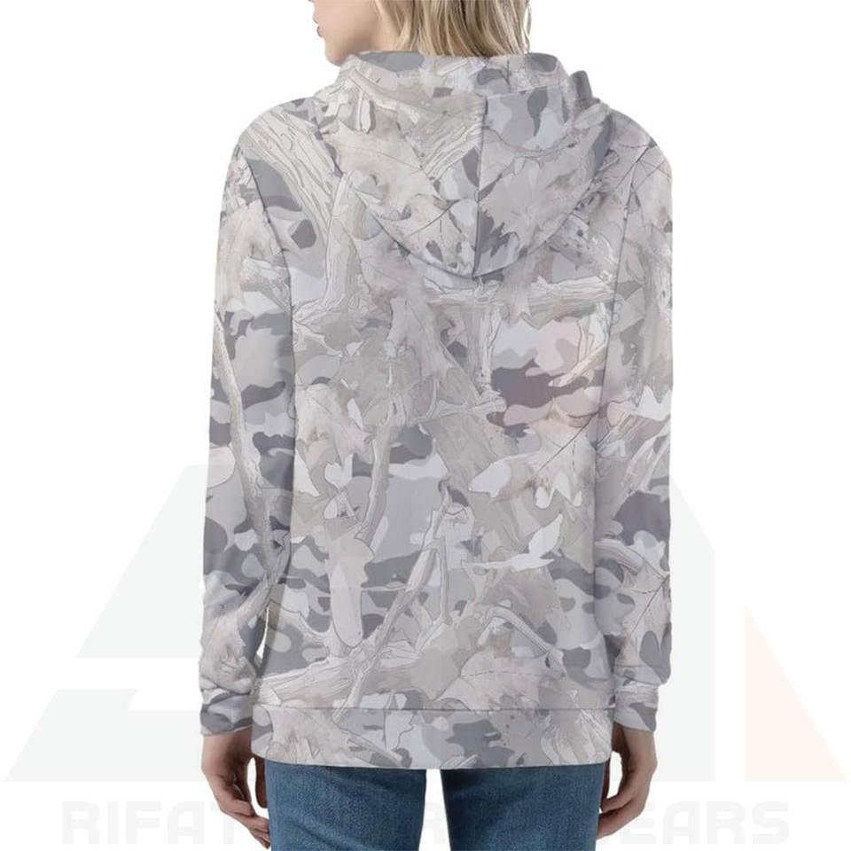 Sudadera con Capucha para Mujer, Estilo Táctico Invernal, Tejido de Felpa, Estampado Gris Claro y Blanco por Sublimación, Mezcla de Algodón Suave, Logotipo Frontal