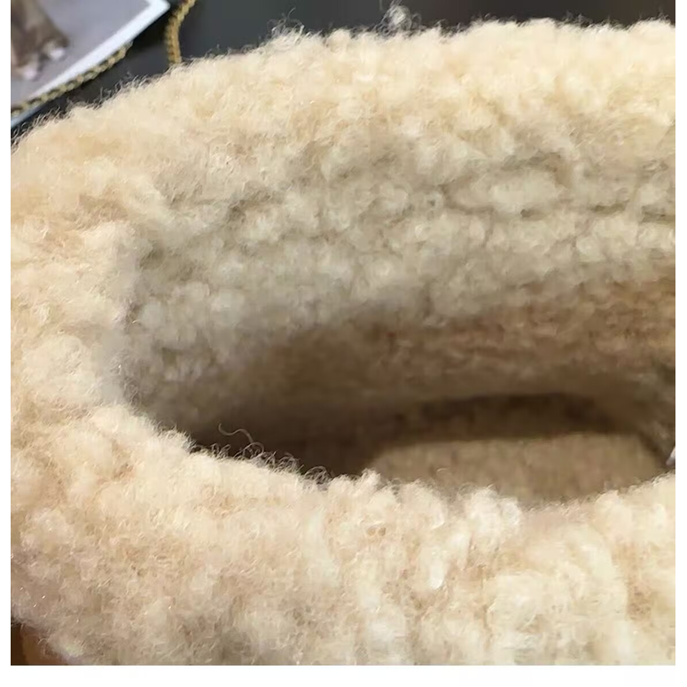 Felpa corta artificial, tacón medio de goma, fondo plano.Características