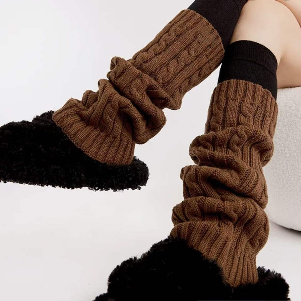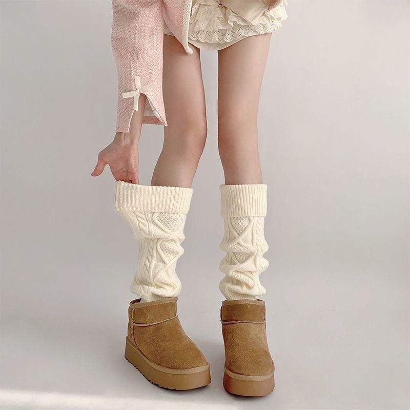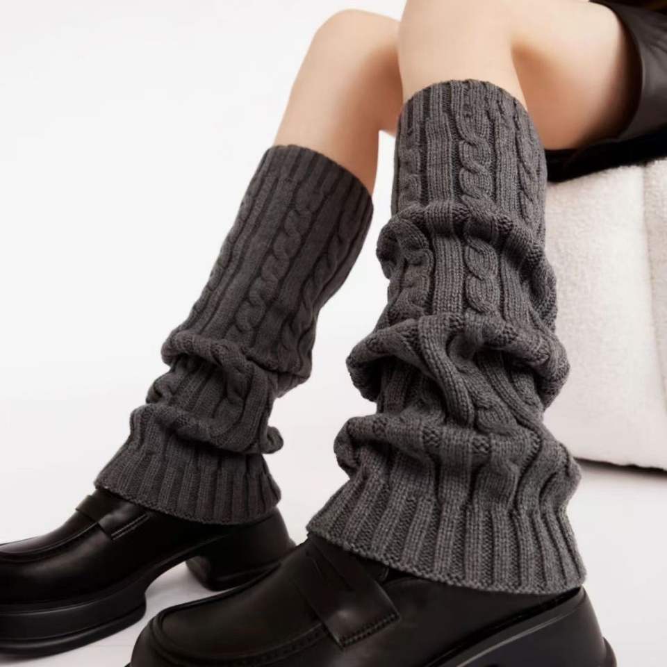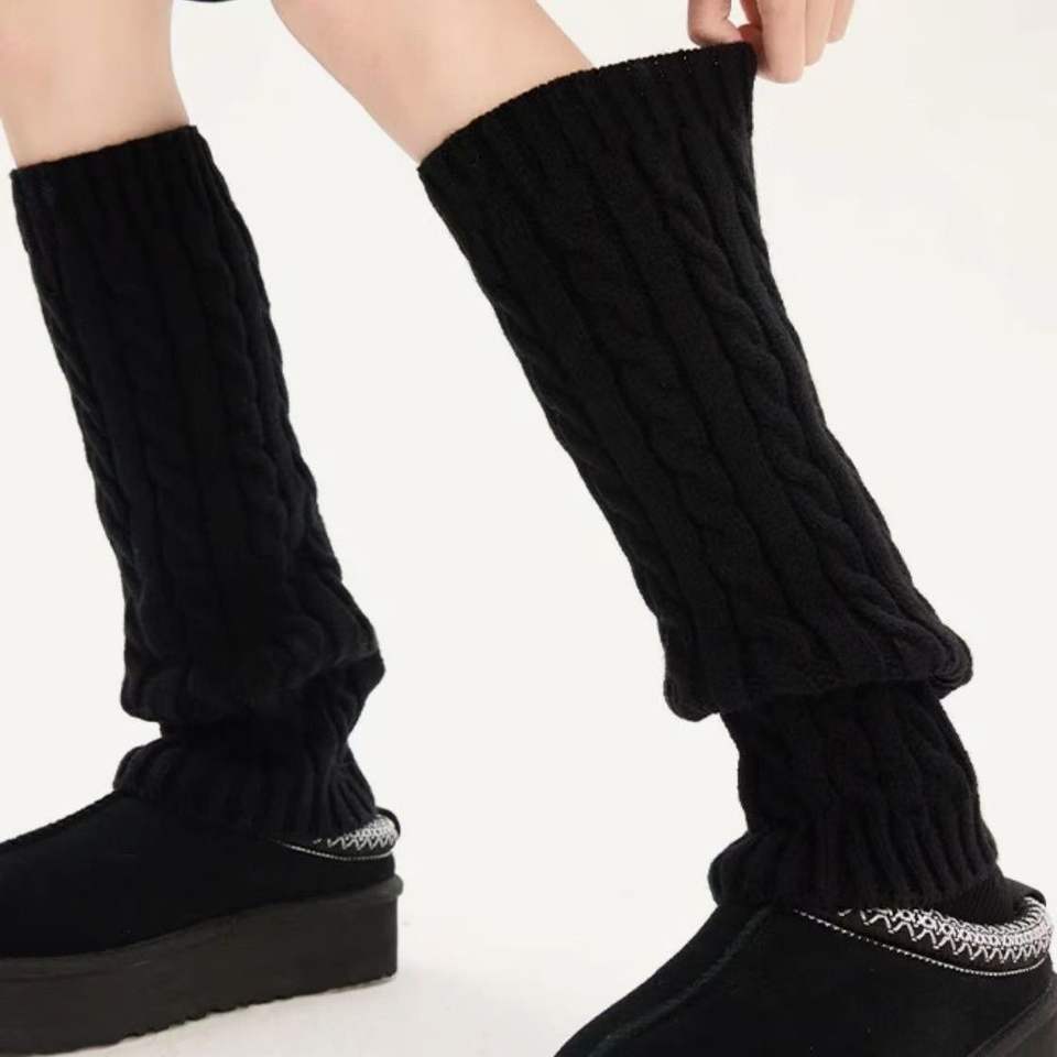 Calentadores de Piernas Gruesos y Cálidos para Invierno, Transpirables, con Patrón Sólido, Estilo Coreano, Tejido Grueso, Calcetines Holgados y Versátiles para Mujer